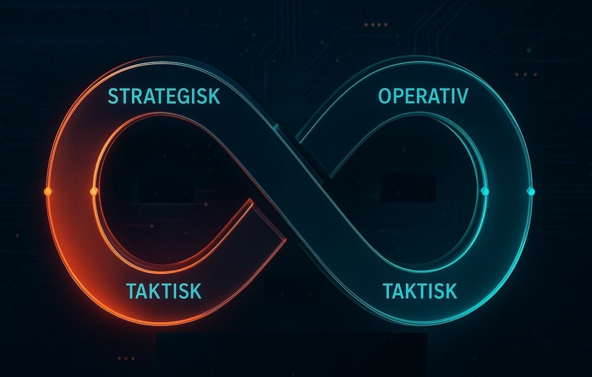 Såhär – i ett ”down up” perspektiv kommer det se ut som att det är Taktisk -> Strategisk -> Operativ tågordning på förvaltningsmodellen – men det är i själva verket ett kretslopp.